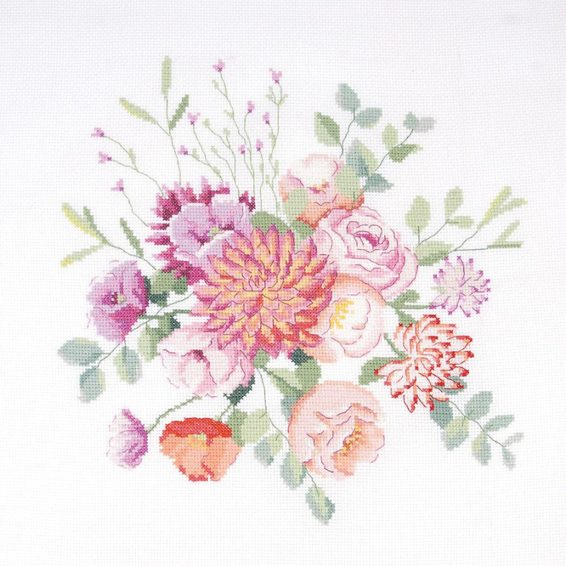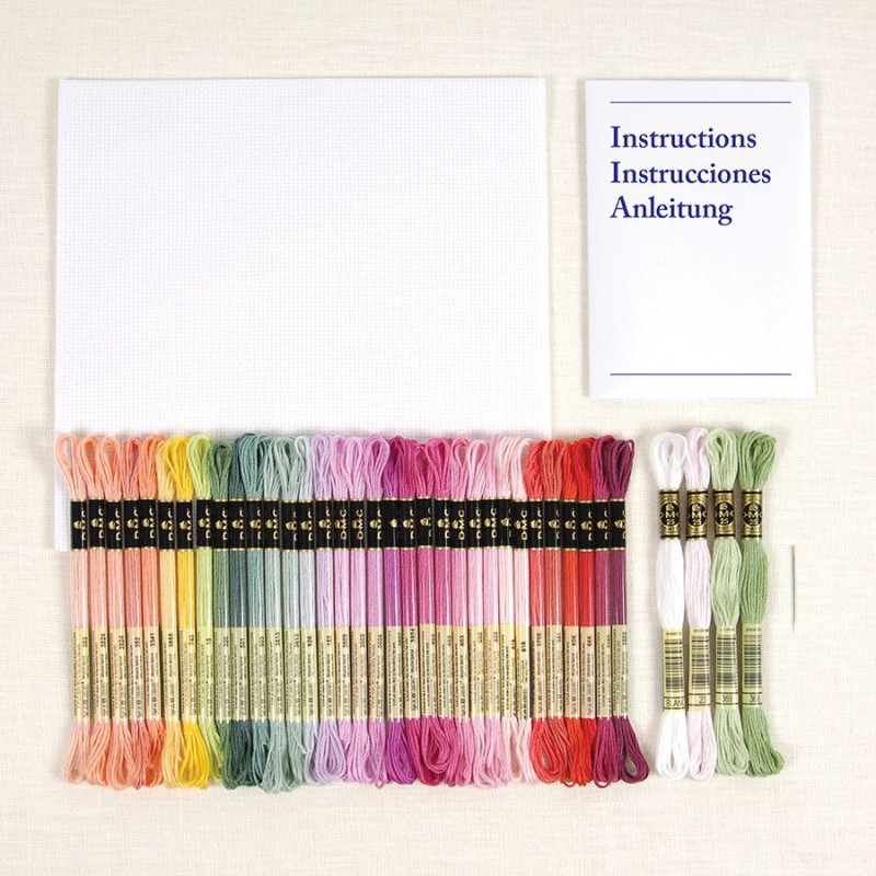 Borde um maravilhoso bouquet de estilo vintage com este kit de nível intermédio concebido por Nathalie Weinzaepflen. Utilize 37 meadas de fio Mouliné Spécial para lhe dar vida. Se precisar de ajuda com algum dos pontos, consulte o guia de diagramas passo a passo e os tutoriais em vídeo no site da DMC.