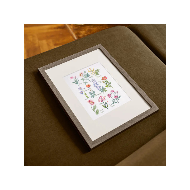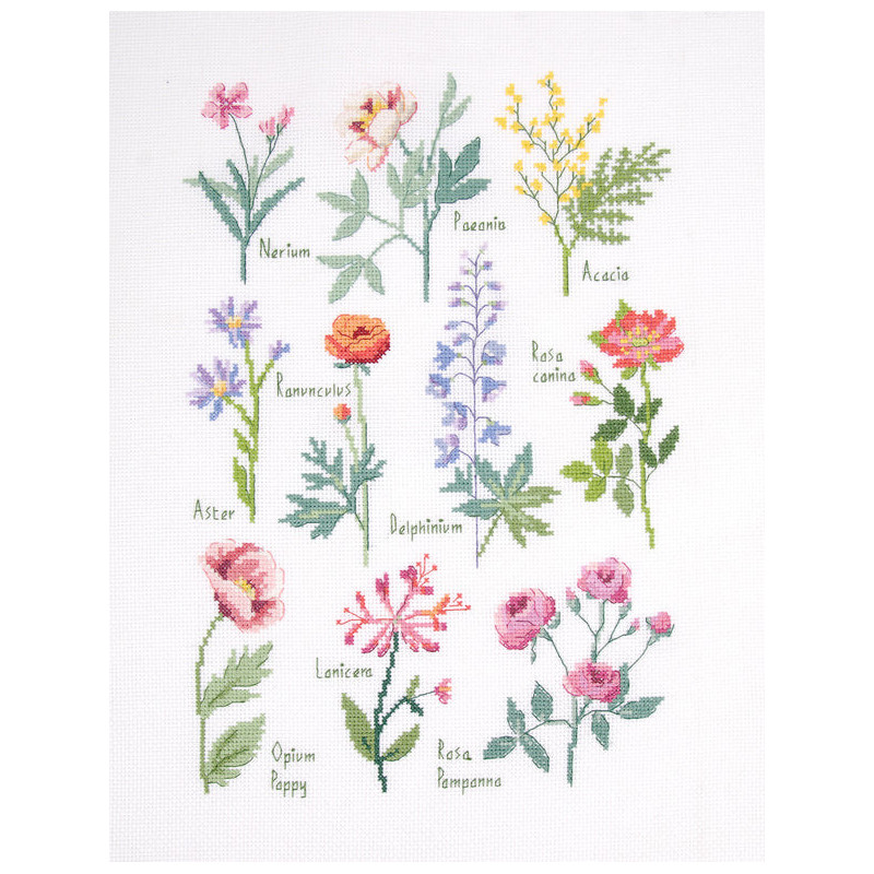 Explore o encanto da natureza com o kit de ponto cruz "Imagem Botânica" da coleção DMC Designer 3.0. Este design apresenta uma delicada ilustração bordada de flores clássicas, cada uma com seu nome botânico, evocando o estilo de pratos científicos antigos.
