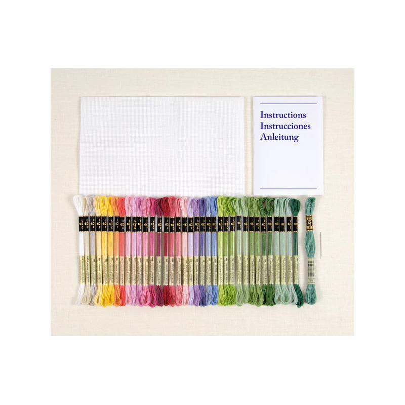 Cada flor foi recriada com uma rica paleta de cores e detalhes realistas, oferecendo um desafio gratificante para os amantes do ponto cruz. Com fios Mouliné Spécial® e tecido DMC Aida, este kit garante um resultado profissional e duradouro.