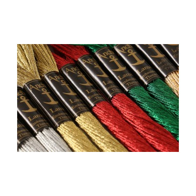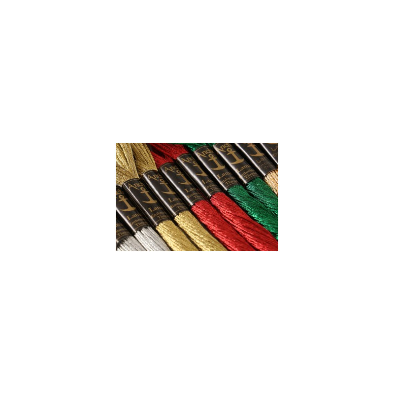 Anchor Lamé funciona lindamente quando combinado com Anchor Stranded Cotton para ponto de cruz, e é excelente para bordar em estilo livre e para ser utilizado em ourivesaria. Mantém a sua cor e brilho e não oxida.