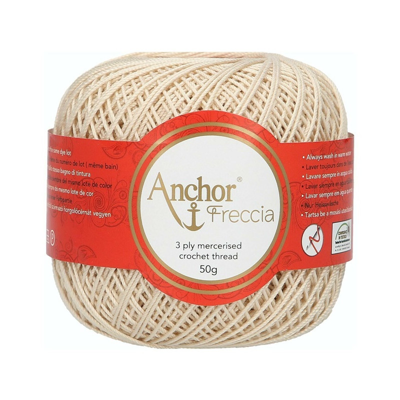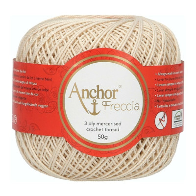 Anchor Freccia etiqueta 12 é um fios100% algodão egípcio de alta qualidade (certificado OEKO-TEX) de 3 cabos, oferecendo um equilíbrio delicado de suavidade, flexibilidade, corpo e luminosidade. Fácil de manusear com um desempenho fantástico, ideal para projetos delicados de crochet para decoração de casa, vestuário de moda e também vestuário para bebés.
