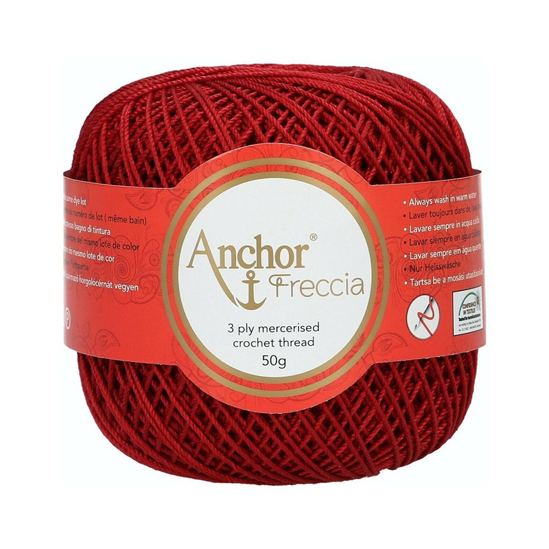 Anchor Freccia etiqueta 12 é um fios100% algodão egípcio de alta qualidade (certificado OEKO-TEX) de 3 cabos, oferecendo um equilíbrio delicado de suavidade, flexibilidade, corpo e luminosidade. Fácil de manusear com um desempenho fantástico, ideal para projetos delicados de crochet para decoração de casa, vestuário de moda e também vestuário para bebés.
