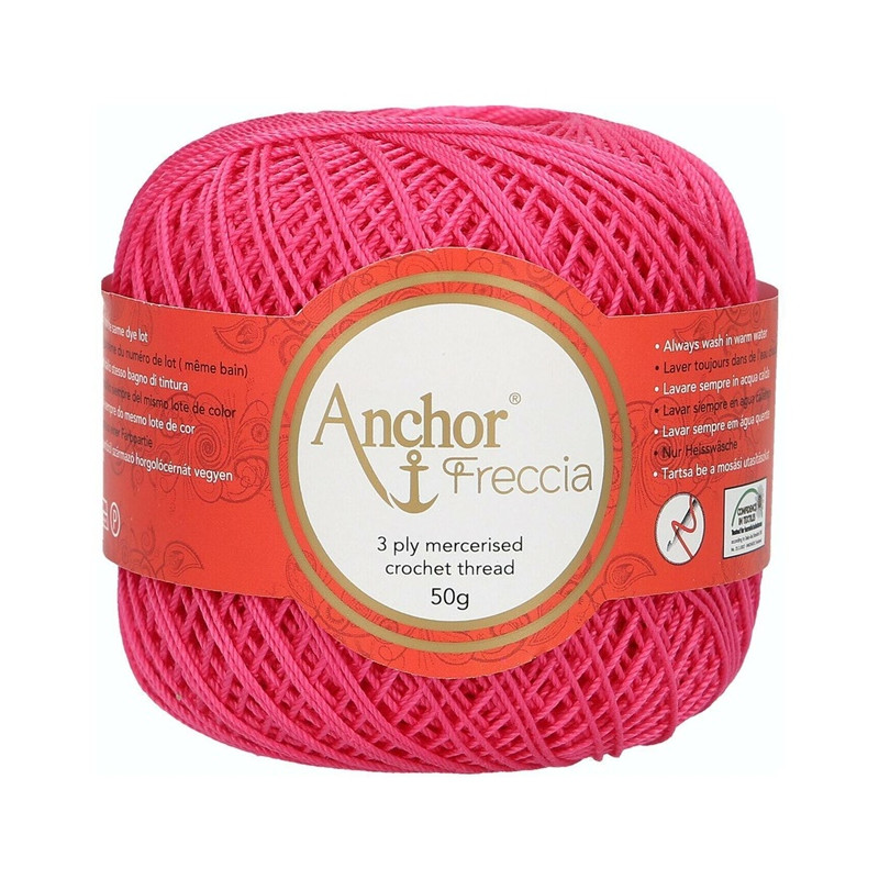 Anchor Freccia etiqueta 12 é um fios100% algodão egípcio de alta qualidade (certificado OEKO-TEX) de 3 cabos, oferecendo um equilíbrio delicado de suavidade, flexibilidade, corpo e luminosidade. Fácil de manusear com um desempenho fantástico, ideal para projetos delicados de crochet para decoração de casa, vestuário de moda e também vestuário para bebés.