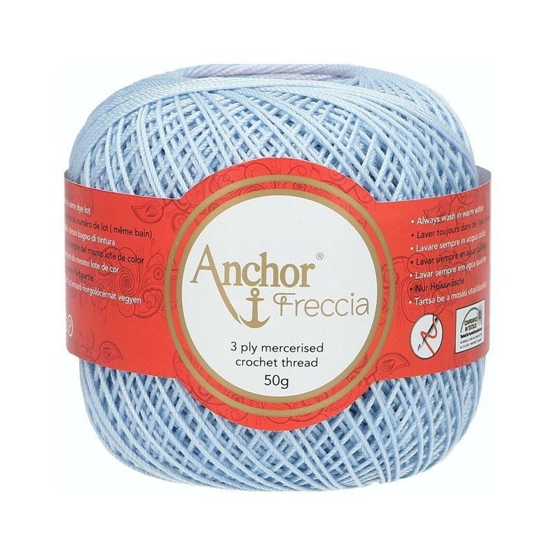 Anchor Freccia etiqueta 12 é um fios100% algodão egípcio de alta qualidade (certificado OEKO-TEX) de 3 cabos, oferecendo um equilíbrio delicado de suavidade, flexibilidade, corpo e luminosidade. Fácil de manusear com um desempenho fantástico, ideal para projetos delicados de crochet para decoração de casa, vestuário de moda e também vestuário para bebés.