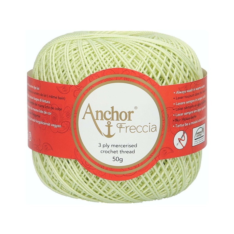 Anchor Freccia etiqueta 12 é um fios100% algodão egípcio de alta qualidade (certificado OEKO-TEX) de 3 cabos, oferecendo um equilíbrio delicado de suavidade, flexibilidade, corpo e luminosidade. Fácil de manusear com um desempenho fantástico, ideal para projetos delicados de crochet para decoração de casa, vestuário de moda e também vestuário para bebés.