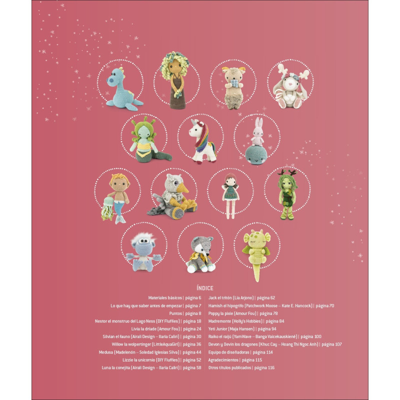Comece a fazer crochê e curta esses novos Amigurumi de fantasia. Criaturas encantadoras abrem as portas para um mundo mágico e levam você para dentro dele sem que você perceba. Siga os passos de Silvian, o Fauno; Em seguida, descanse com Devon e Devin, os dragões, e finalmente peça a Lizzie, o unicórnio, para levá-lo para um passeio. Aventuras divertidas e muitas surpresas esperam por você no final deste arco-íris Amigurumi!