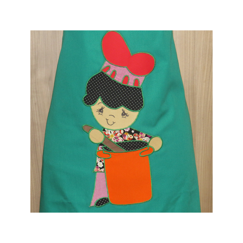 Avental em sarja com aplicação.