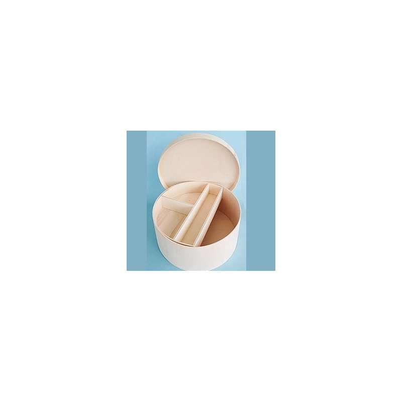 Caixa redonda com 1 tabuleiros para batizado. Pode colocar a roupinha, toalha, vela e concha.