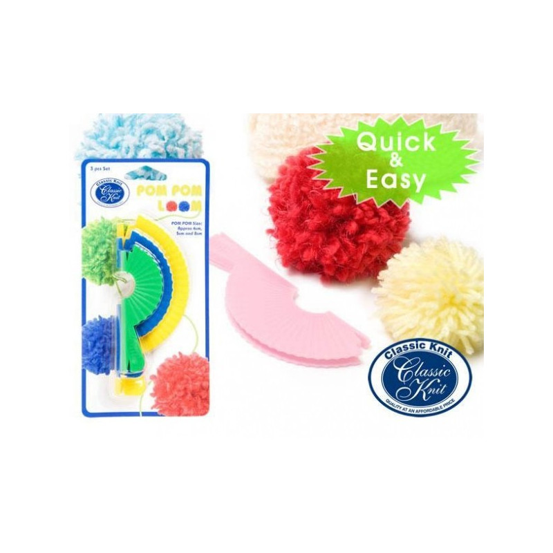 Classic Knit - Set de 3 peças para fazer pompons.Rápido, simples e fácil de usar - ideal para as crianças.Tamanhos - 4cm, 5 cm e 8 cm..