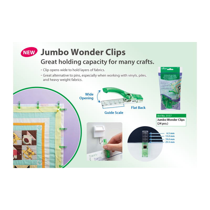917 321 358**Clover - Conjunto de molas com uma grande abertura, ideais para fixar várias camadas de tecido durante a costura. São uma excelente alternativa aos alfinetes, espcialmente quando de trabalha com tecidos pesados e grossos. Ideal para segurar o binding ao fazer quilting.