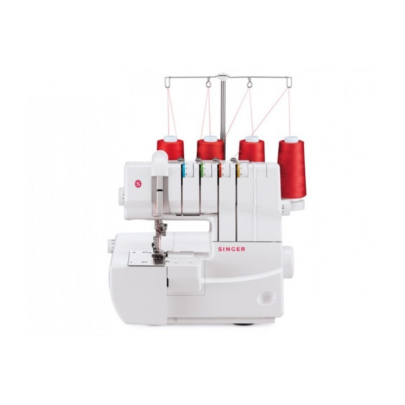 Possui um ponto triplo de cobertura, pontos de cobertura largos e estreitos, com fios identificados por cor, sistema rápido e fácil de colocar a linha no looper, indicadores de ajuste para o comprimento do ponto e alimentação diferencial que lhe permite alterar a velocidade com que o tecido é alimentado através da máquina.
