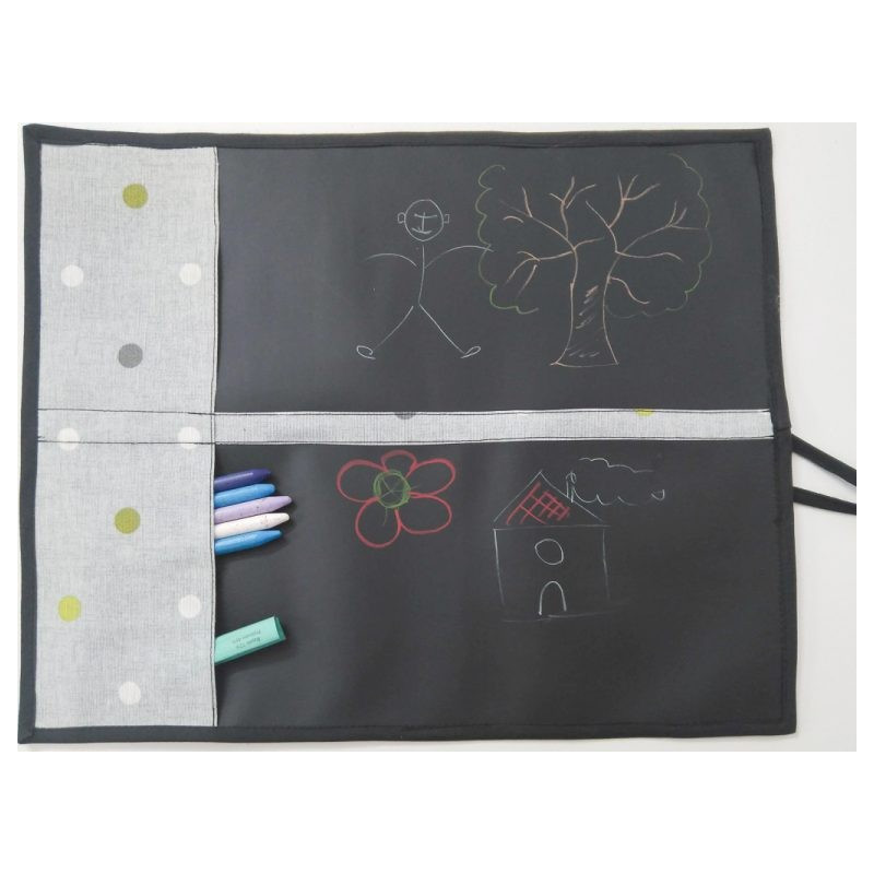 Transforme os seus trabalhos em autênticos quadros de giz. A tela foi pensada para ser cosida à máquina e é maleável tipo lona ou plastificado. Muito fácil de usar, funciona tal e qual como um quadro. Escreve-se com o giz e remove-se com o apagador!