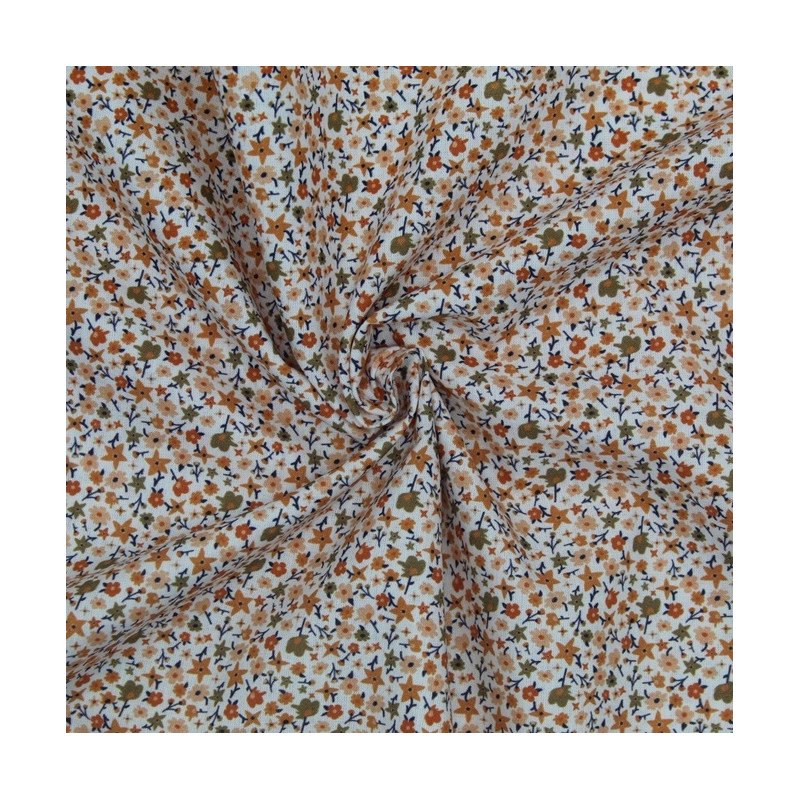 Tecido de flor pequena, delicado e intemporal, muito utilizado no vestuário tradicional de ranchos folclóricos. ideal para confeção de saias, aventais e camisas, confere autenticidade e um toque clássico às peças. Leve, versátil e perfeito para recriar o charme da tradição portuguesa.