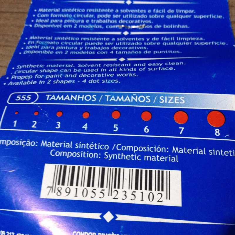 917 321 358**Pinta Bolinhas Condor 555.2 é um material sintético resistente a solventes e fácil de limpar, com formato circular, pode ser utilizado sobre qualquer superfície, ideal para pintura e trabalhos decorativos.