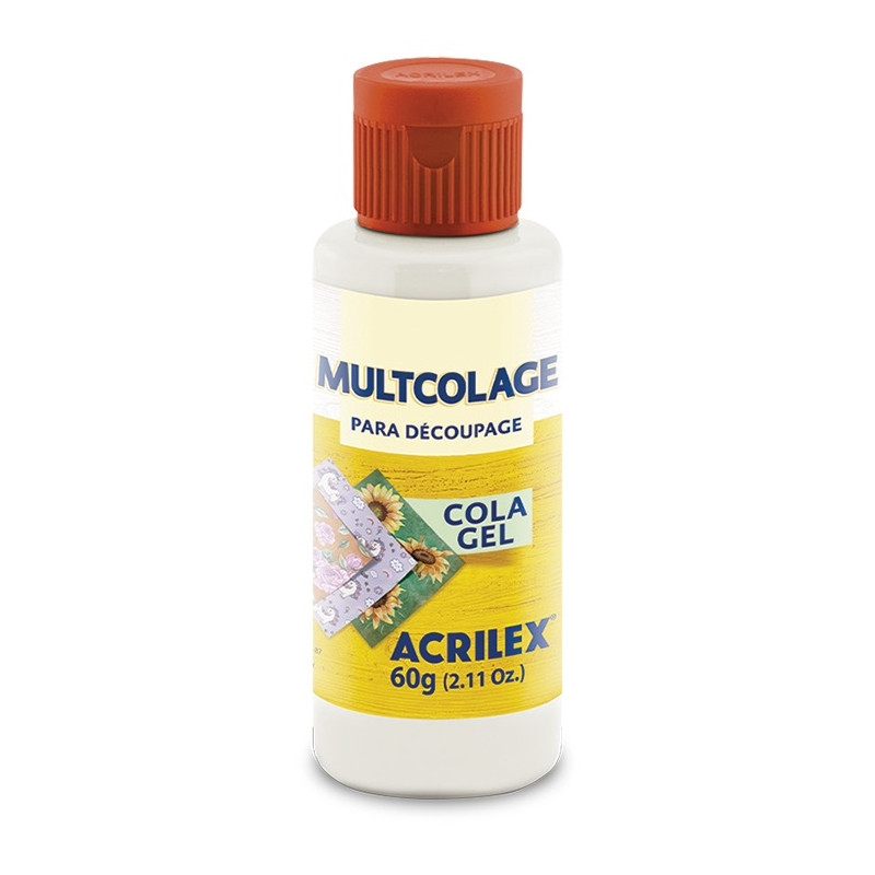 Acrilex - Cola gel para trabalhos de découpagem sobre madeira, cerâmica, gesso, tela, isopor e cortiça. Embalagem de 60gr